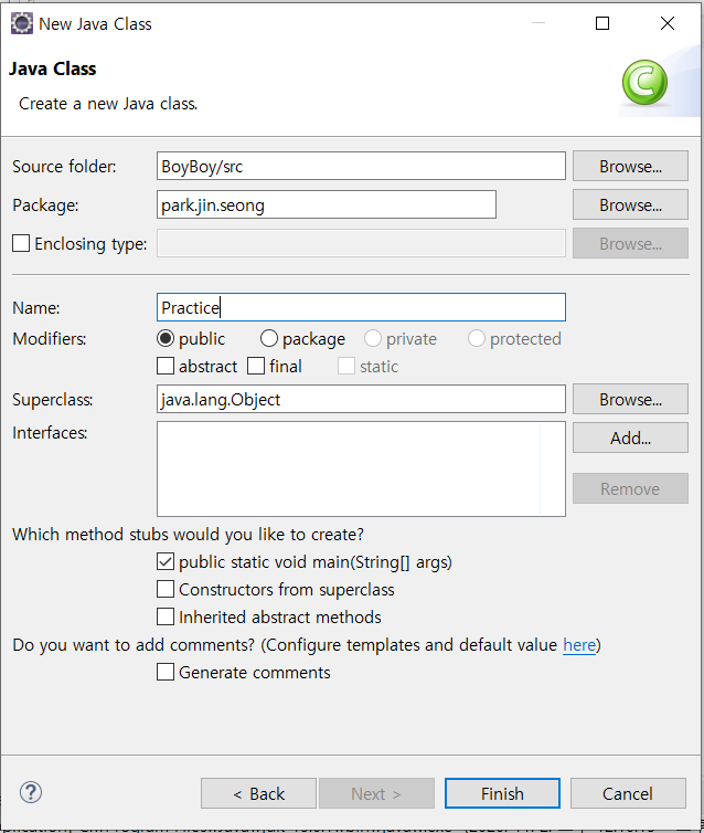 -이클립스 에디터에 우리가 작성하는 코딩은 하나의 클래스를 생성하는 작업이다.