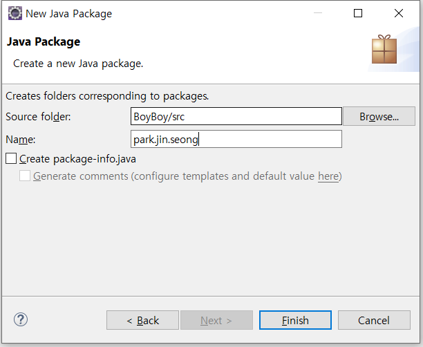 -상위 패키지 폴더 아래에 하위 패키지 폴더가 생성됨.