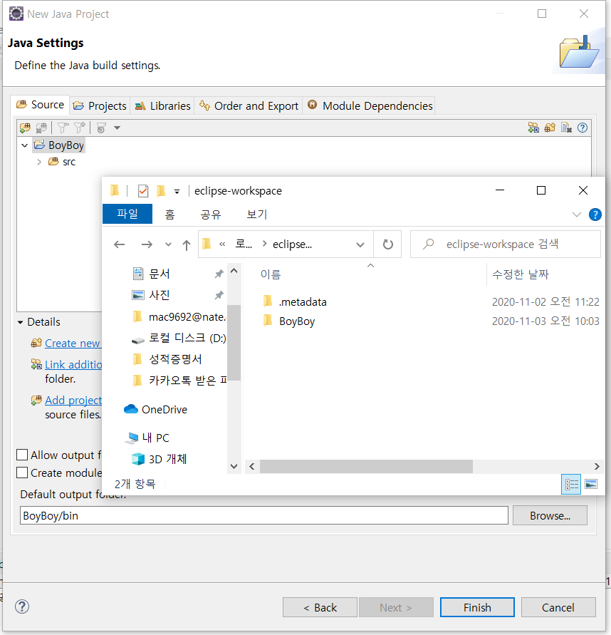 -소스코드를 저장하는 ".java" 파일의 패키지는 "src" 폴더에 저장됨.